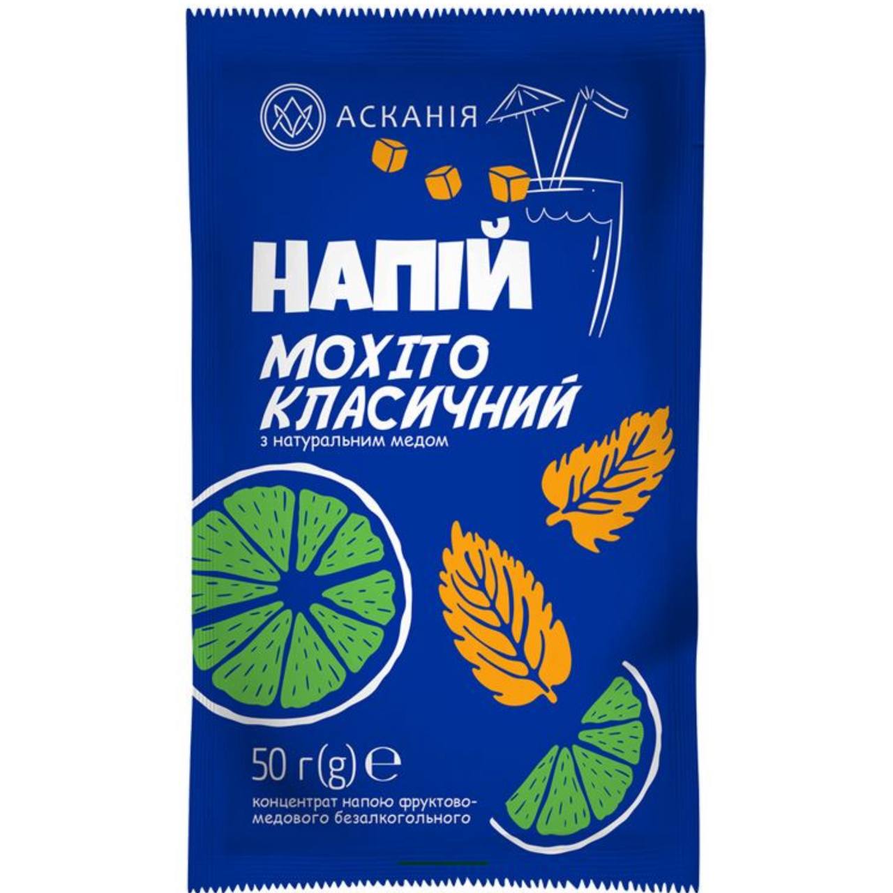 Асканія Чай-сашет Мохіто Класичний — це ароматна композиція на основі чорного чаю з натуральними домішками м’яти та лайма. Напій має збалансований освіжаючий смак із легким цитрусовим відтінком і приємним ароматом, що нагадує класичний безалкогольний мохіто.