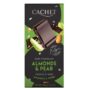 Cachet Dark Chocolate Almonds & Pear — преміальний бельгійський шоколад із вмістом какао 57 %, що поєднує хрусткі шматочки мигдалю та ніжні грушеві відтінки. Це збалансоване поєднання гірко-солодкого шоколаду з наміром надати продукту текстуру та фруктову свіжість. Виготовлено в Бельгії тримовим стандартом якості.